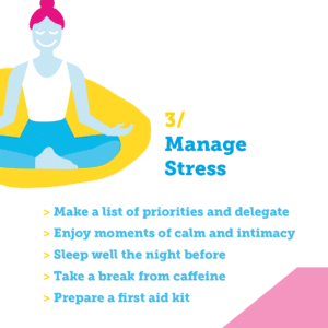 - Enjoy moments of calm and intimacy, alone or with your partner, and practice some relaxation techniques (short meditation, yoga, massage…)