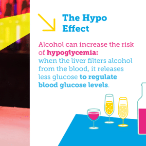Consuming alcohol increases the risk of hypoglycemia – which can occur up to 24 hours after having a drink. Alcohol is immediately released into the bloodstream. The liver then breaks down and eliminates alcohol by filtering the blood. This can interfere with your ability to perform “normal” tasks, such as releasing glucose to regulate blood glucose levels. In doing so, alcohol can increase the effects of insulin, and lead to more severe hypoglycemia.