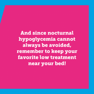 And since nocturnal hypoglycemia cannot always be avoided, remember to keep your favorite low treatment near your bed!