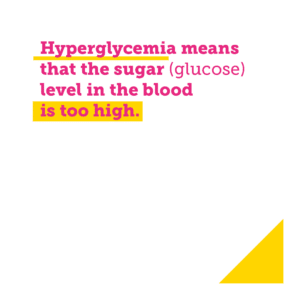 Hyperglycemia means that the sugar (glucose) level in the blood is too high. In theory, hyperglycemia is defined as a fasting glucose level above 6.1 mmol/l or 110 mg/l.