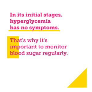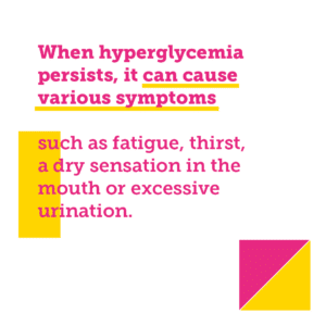 In its initial stages, hyperglycemia has no symptoms. That’s why it’s important to monitor blood sugar regularly. When hyperglycemia persists, it can cause various symptoms such as fatigue, thirst, a dry sensation in the mouth or excessive urination.